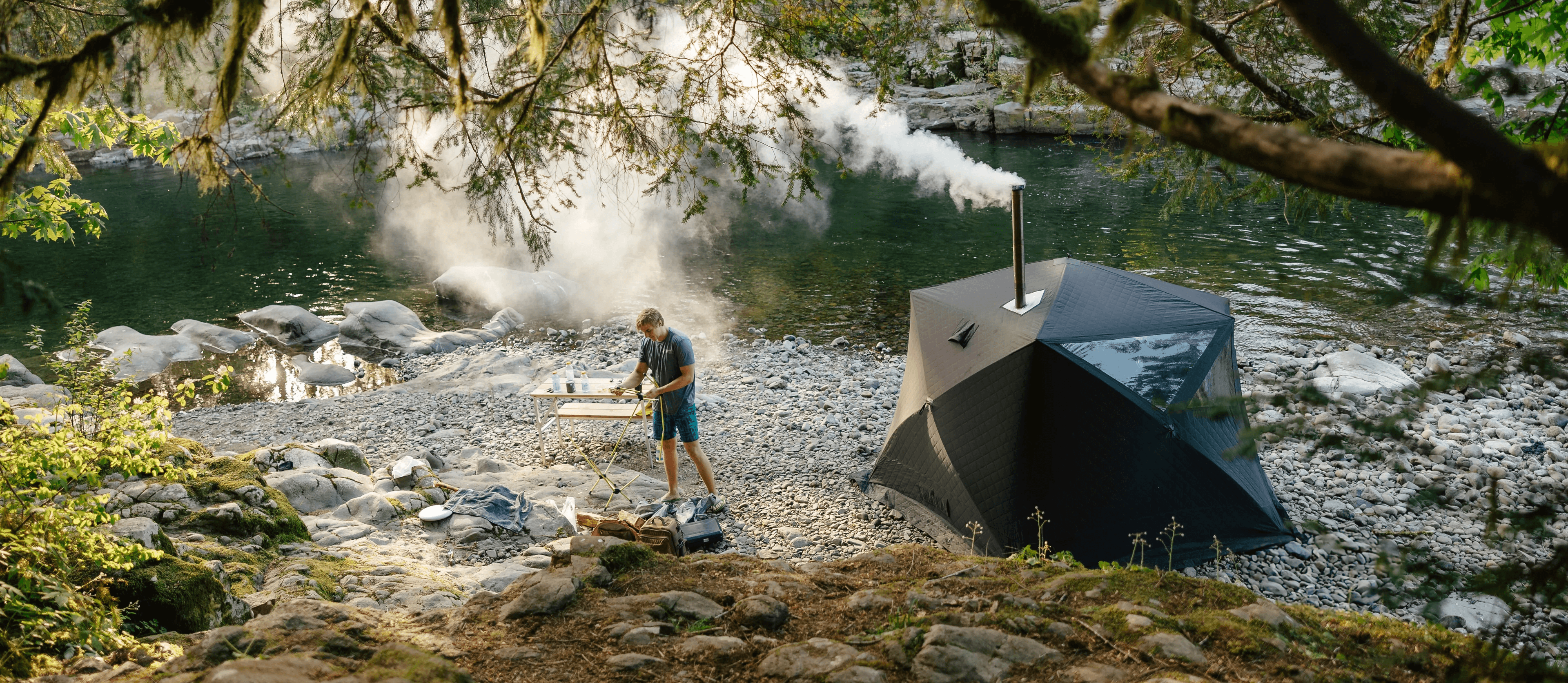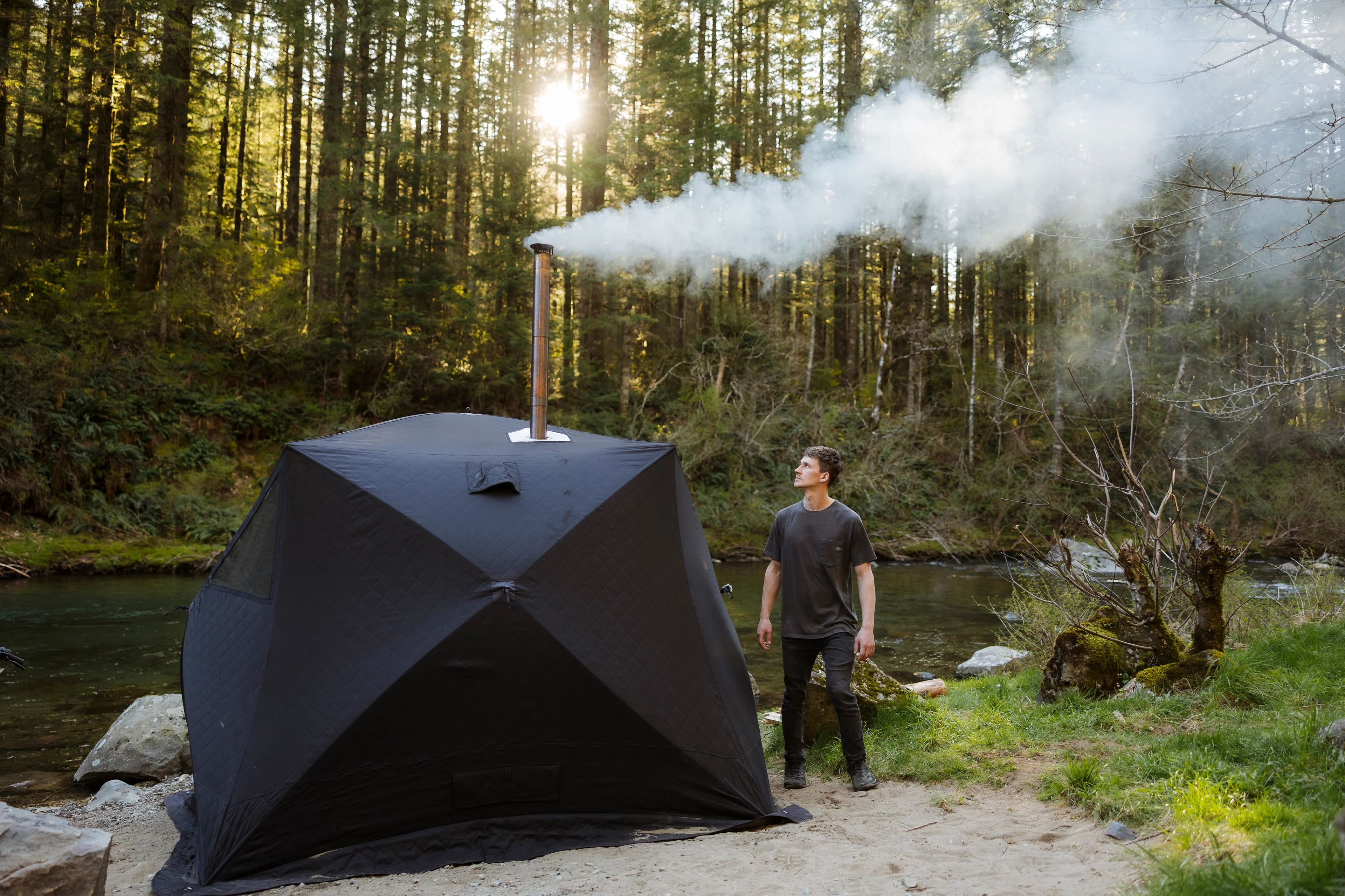 Our top-of-the-line wood burning tent sauna has a stainless steel stove that also happens to be North bend's only ADA accessible outdoor sauna.